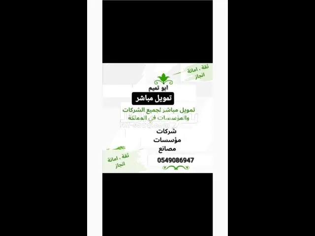 - > تمويل الشركات والمؤسسات والمصانع وتقديم حلول تمويلية, تواصل مع المعلن