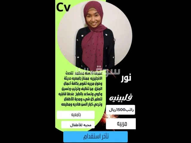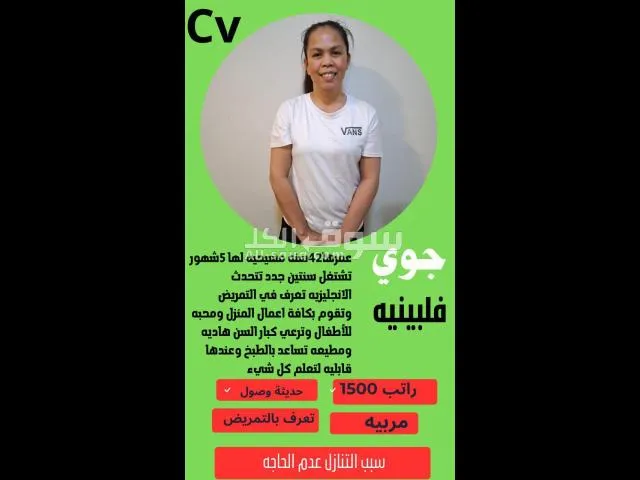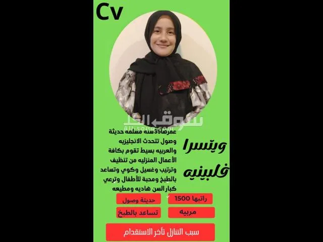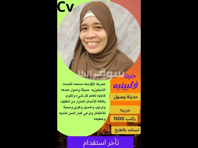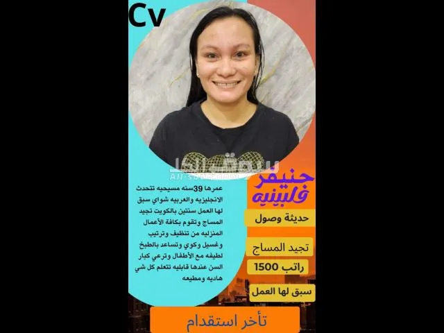 السلام عليكم مكتب عهد الخليج للعماله المنزليه يعلن عن استقبال عاملات المنازل للتنازل من جميع ال******يات من الكفيل مباشر وإيجاد الحلول المناسبة لها أو توفير البديل المناسب يوجد لدينا قعدت عملاء كبيره ومطلوب منا عاملات منازل من جميع ال******يات للتواصل معنا ابوياسين 0572180902
