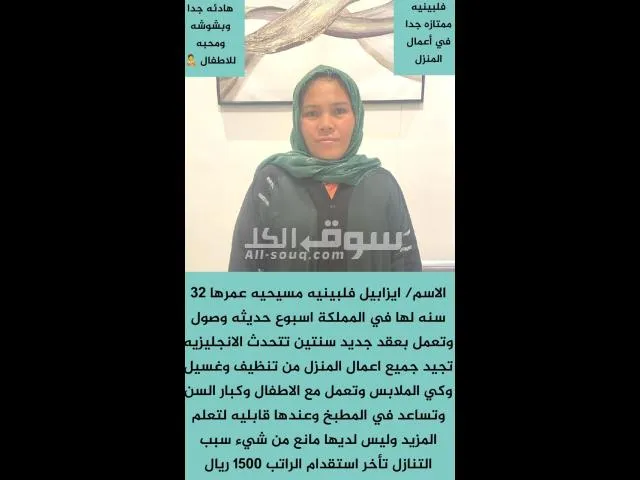 فلبينيه ممتازه تجيد كافه اعمال المنزل