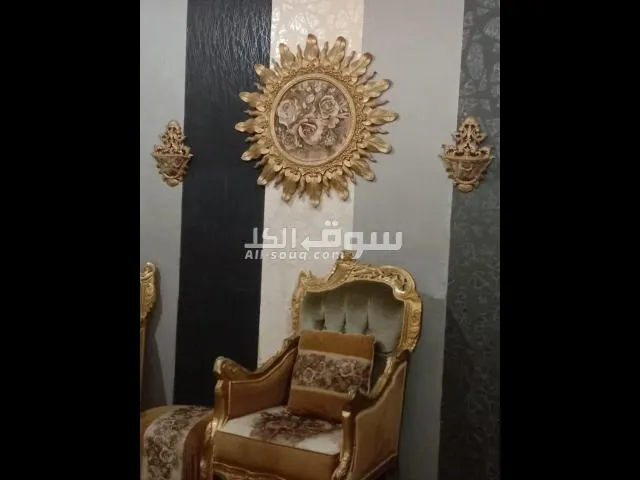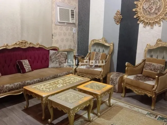 كنبة كبيرة مع ٢ كراسي مفردة مع بف مدور وخمس طاولات وا****سوار للحائط
