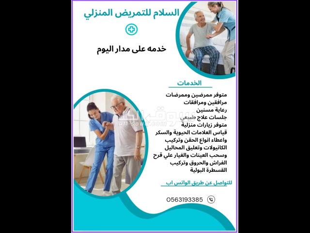 السلام للتمريض المنزلي والزيارات المنزليه وجلسات علاج طبيعي 👈 في مقام والدنيا والامانة في رقبتنا 👈اطلع لدوامك وخليك مطمئن علي مريضك 👈نقدم لكم افضل خدمه طبيه ممكنه اتواصله معنا حياكم الله وابشره بالصحه والعافية ☀متوفر لدينا ممرضين وممرضات ☀ومرافقين ومرافقات للعمل بكل أمانة في التمريض المنزلي والمرافقه في المستشفى لديهم خبرات واسعة واسعة في مجال التمريض المنزلي ☀لديهم خبرات واسعة في ر...