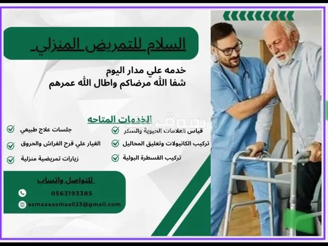 السلام للتمريض المنزلي والزيارات المنزليه وجلسات علاج طبيعي