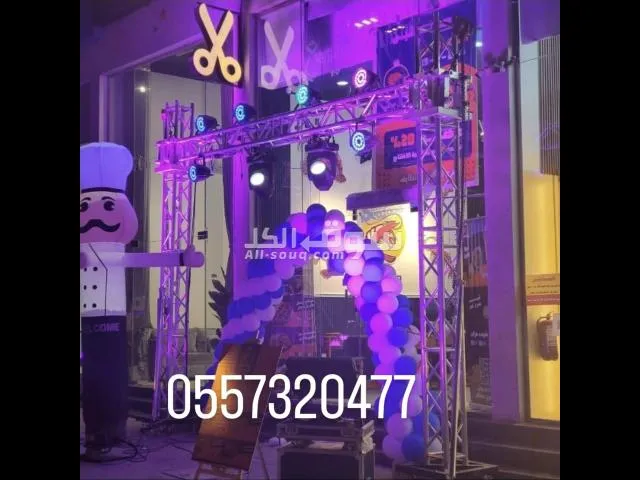 تاجير تجهيزات افتتاحات حفلات بالونات كشافات