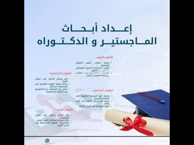 حل واجبات وإعداد أبحاث جامعية ورسائل الماجستير والدكتوراه