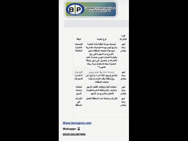 خدمات التوصيات الذهبية وإدارة المحافظ باعلي ربح يومي واسبوعي لمحفظتك من مكتبنا الاستشاري العالمي بالقاهرة بورصة بروس .. ونتاءجنا وارباحنا معلنه ومصورة اول باول علي تويتر وتليجرام