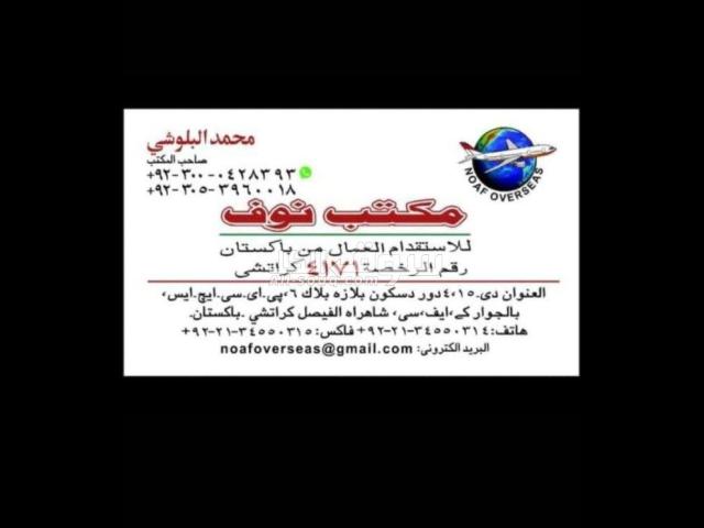 للاستقدام من باكستان.... يسرنا تقديم عرضنا المميز لتوفير العمالة من دولة باكستان نحن بعون الله نقوم بتخليص جميع الاجراءات المطلوبه ونجلب لكم على حسب شروطكم ونمدكم بما تحتاجونه من العمالة المؤهلة في كافة المجالات المرخصة لتقديم الموارد البشرية الفنية والمؤهلة نستطيع أن نوفر لكم أفضل الأيادي العاملة ونضمنها لكم لدينا فريق متخصص لدراسة طلباتكم وإجراء المقابلات واختبار المتقدمين والتأكد من ا...